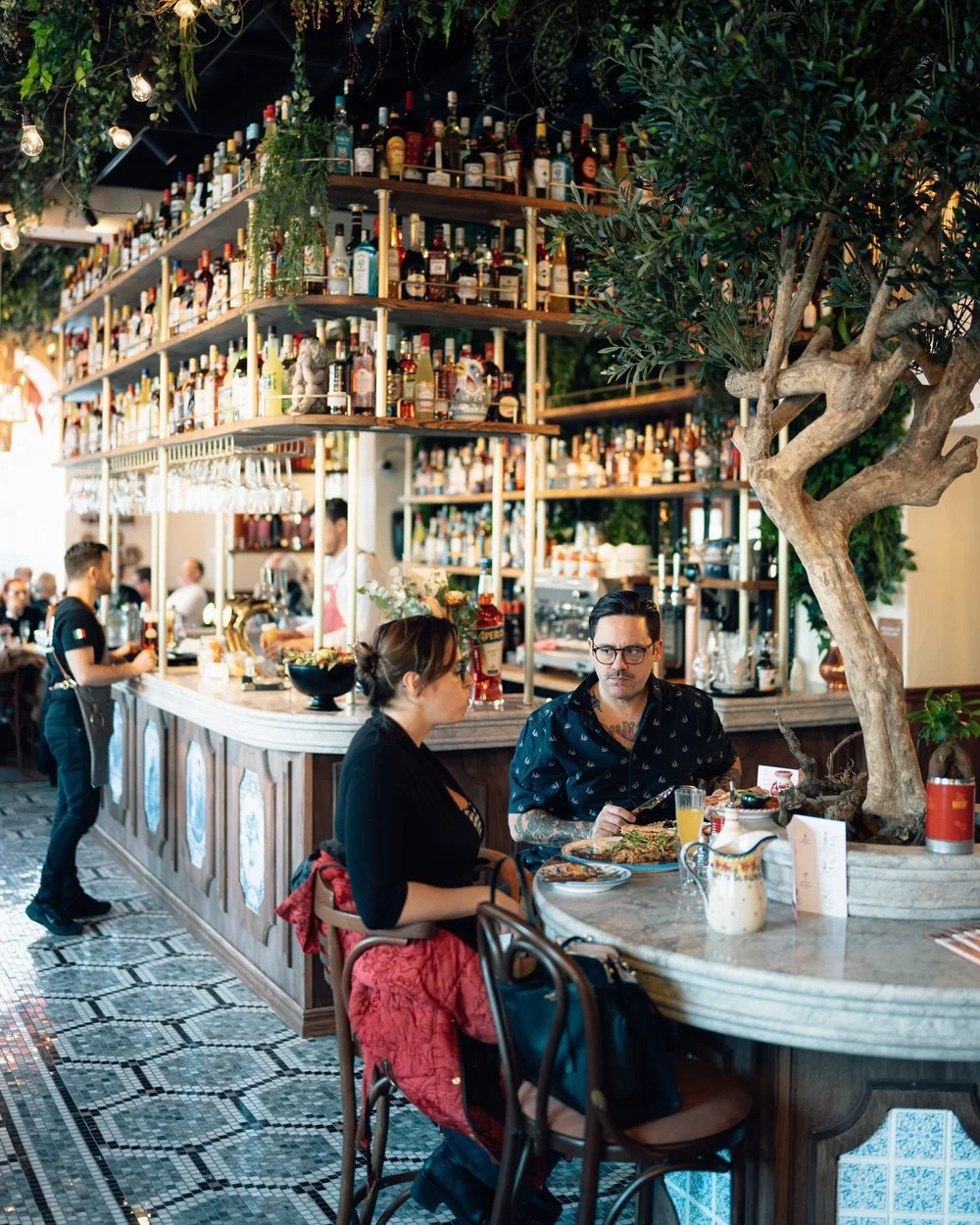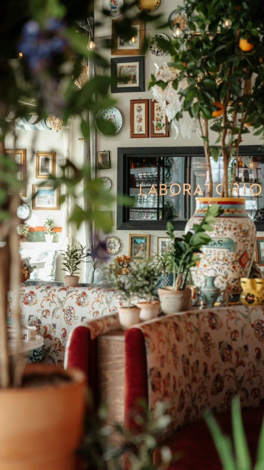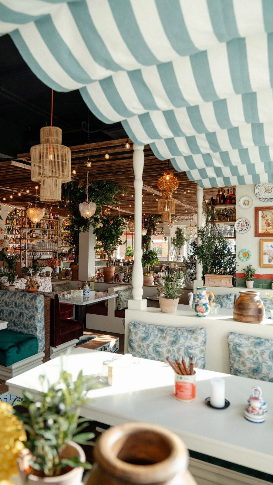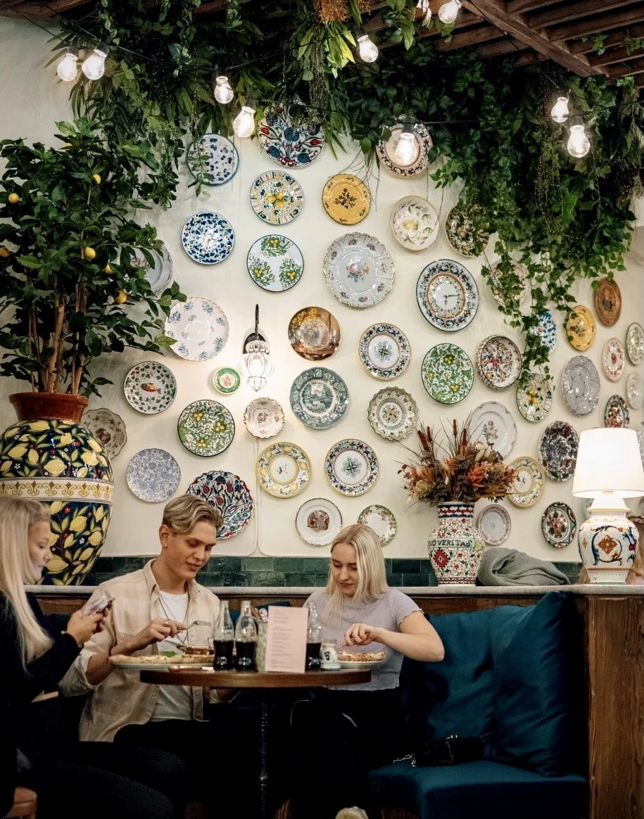 Det går inte att ha för mycket detaljer, mönster eller färger. Helhetsupplevelsen för gästen står i centrum, inredningen spelar samma noter som maten: